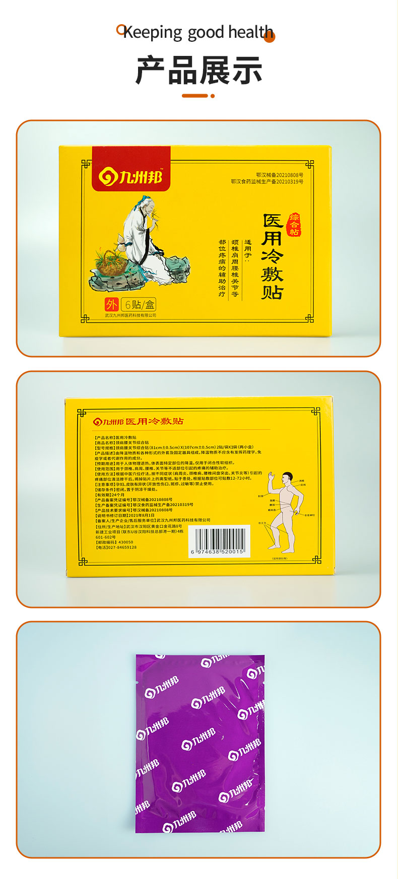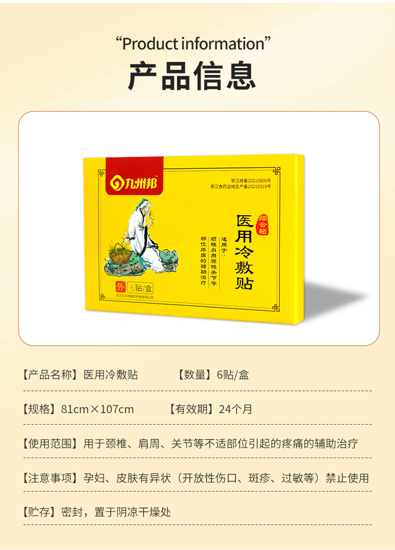 九州邦醫(yī)用冷敷貼疼痛膏貼oem定制貼牌產(chǎn)品說明: