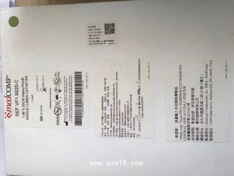 產(chǎn)品由經(jīng)外周置入中心靜脈導(dǎo)管(單腔、雙腔和三腔)、帶擴(kuò)?張器式可撕裂鞘、套針式(OTN)可撕裂鞘、無(wú)針注射帽、側(cè)支?適配器、導(dǎo)絲、穿刺針、10cc注射器、導(dǎo)管內(nèi)芯、手術(shù)刀、?卷尺、導(dǎo)管固定裝置、止血帶、紗布、固定翼。不同型號(hào)所?含的組件不同。產(chǎn)品主要原材料:經(jīng)外周置入中心靜脈導(dǎo)管?由聚氨酯、聚丙烯、聚氯乙烯和ABS制成;可撕裂鞘由聚四氟?乙烯+9%三氧化鉍(BiQ3)、聚丙烯制成;擴(kuò)張器由尼龍/聚醚?嵌段酰胺樹(shù)脂(Pebax)+129?%硫酸鋇制成; 穿刺針由304不銹?鋼、九01日用成、無(wú)針注射帽由聚碳酸酯制成;側(cè)支適配器由?聚氯乙烯、聚氨酯、PVC等材料制成;導(dǎo)絲由鎳鈦合金和親水?涂層制成;注射器由聚丙烯和合成橡膠制成;導(dǎo)管內(nèi)芯由304?不銹鋼、硅膠漆層、尼龍和高密度聚乙烯制成;手術(shù)刀由303?不銹鋼和聚丙烯制成。