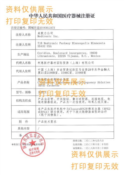 適用范圍:本產(chǎn)品在醫(yī)療機構(gòu)中與ClosureRFG射頻發(fā)生器(RFG2或RFG3)聯(lián)合使用,用于下肢大隱靜脈曲張的治療(限于淺靜脈)。