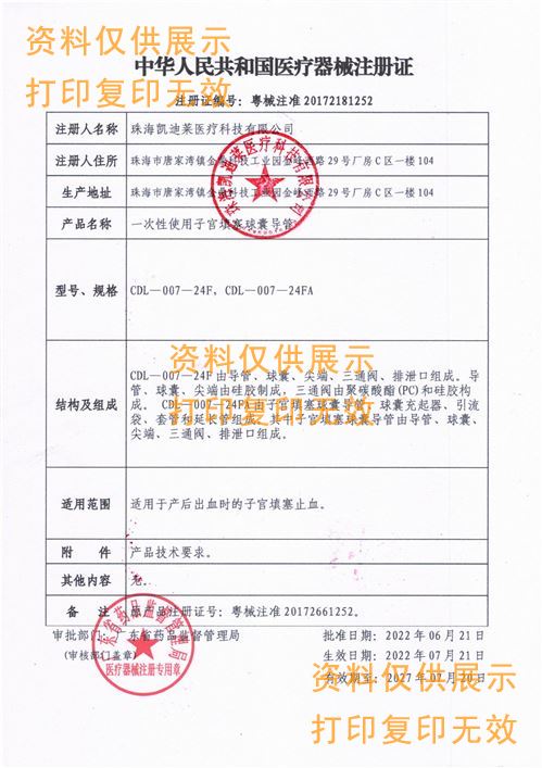 凱迪萊止血球囊、一次性使用子宮填塞球囊導管CDL-007-24FA產(chǎn)品說明: