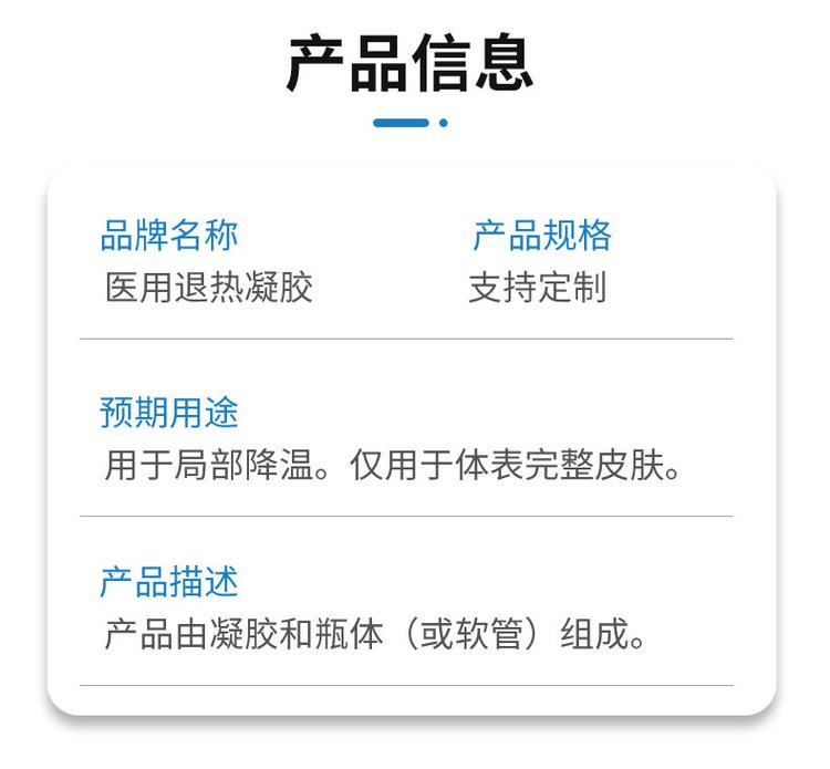 醫(yī)用退熱凝膠降溫凝膠直供直發(fā)醫(yī)院oem貼牌代加工產(chǎn)品說明:
