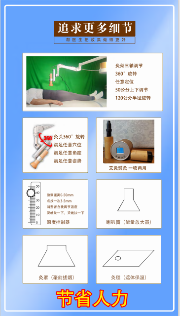 ?結(jié)構(gòu)組成:燙熨灸療儀由主機、氣管、燙熨灸療儀組件組成。主機包括控制系統(tǒng)、顯示屏、氣泵和內(nèi)部電源;燙熨灸療儀組件包括灸療柄、灸療頭、燙熨頭、艾灸柱(不含藥理作用)、加密卡。