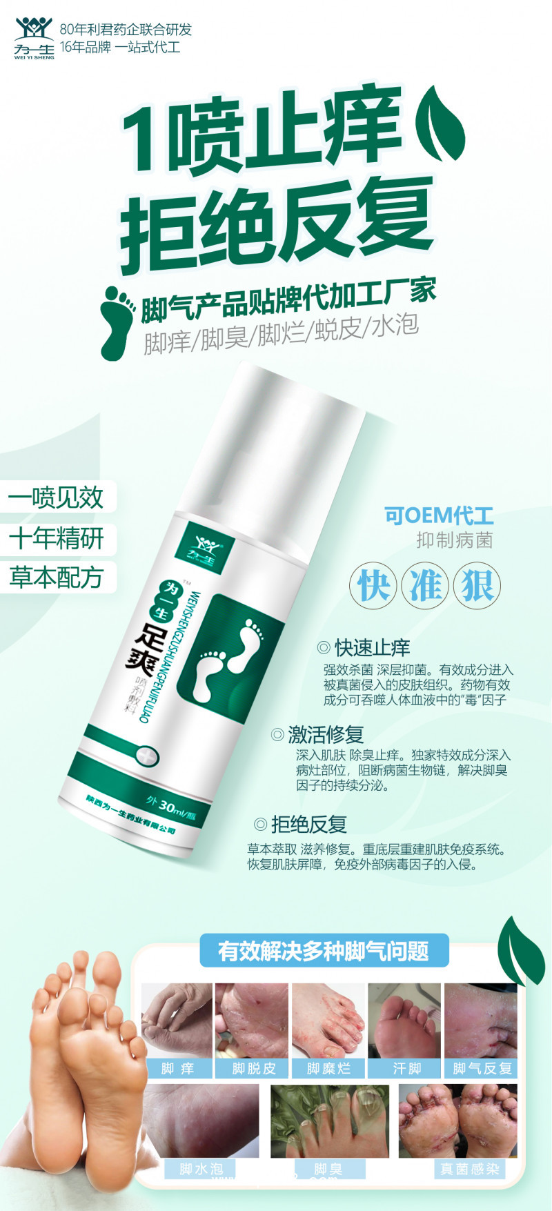 廠家定制足部噴劑噴霧抑菌液ODM貼牌代加工產品說明: