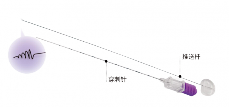 6. 待定位絲末端完全釋放,撤出推送桿和穿刺針