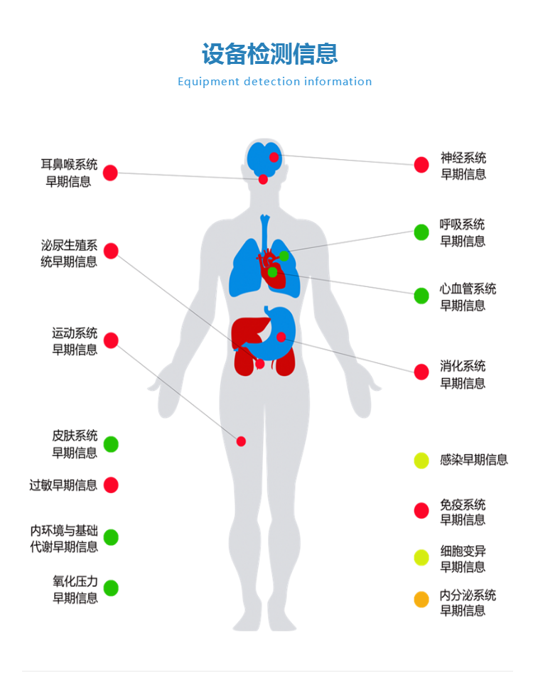 HRA亞健康管理檢測儀能夠檢測出人體各個器官和系統(tǒng)的功能狀態(tài),包括心血管系統(tǒng)、呼吸系統(tǒng)、消化系統(tǒng)、內(nèi)分泌系統(tǒng)等。