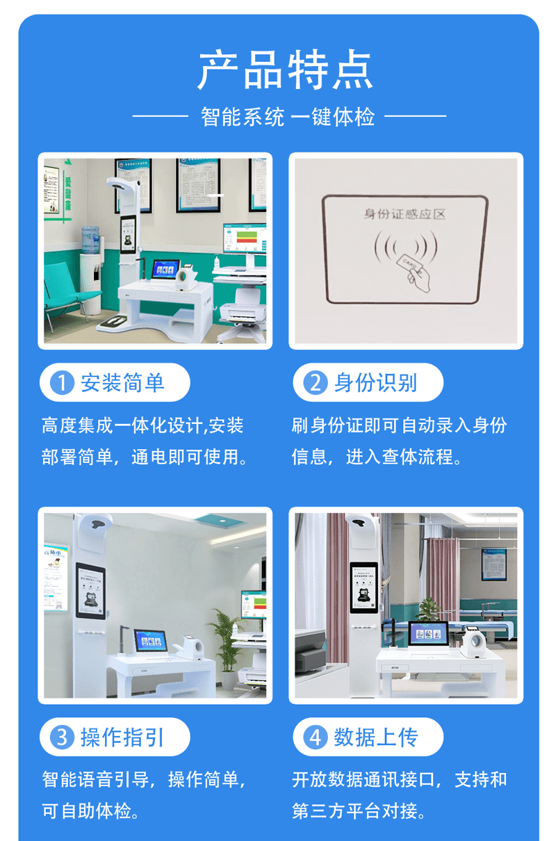 減輕醫(yī)療負擔:與傳統(tǒng)的醫(yī)院體檢相比,上正華瑞健康自測一體機能夠減輕醫(yī)療機構(gòu)的壓力,降低醫(yī)療資源的浪費。上正華瑞健康自測一體機適合在社區(qū)、家庭等場合使用,使得體檢更加方便、高效,為老年人提供更加貼心的健康服務。
