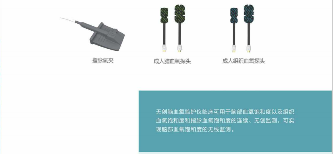 本產(chǎn)品適用于局部腦組織血氧飽和度以及外周組織血氧飽和度和指脈血氧飽和度的連續(xù)無創(chuàng)監(jiān)測,可實現(xiàn)局部腦組織血氧飽和度監(jiān)測數(shù)據(jù)的無線傳輸。??