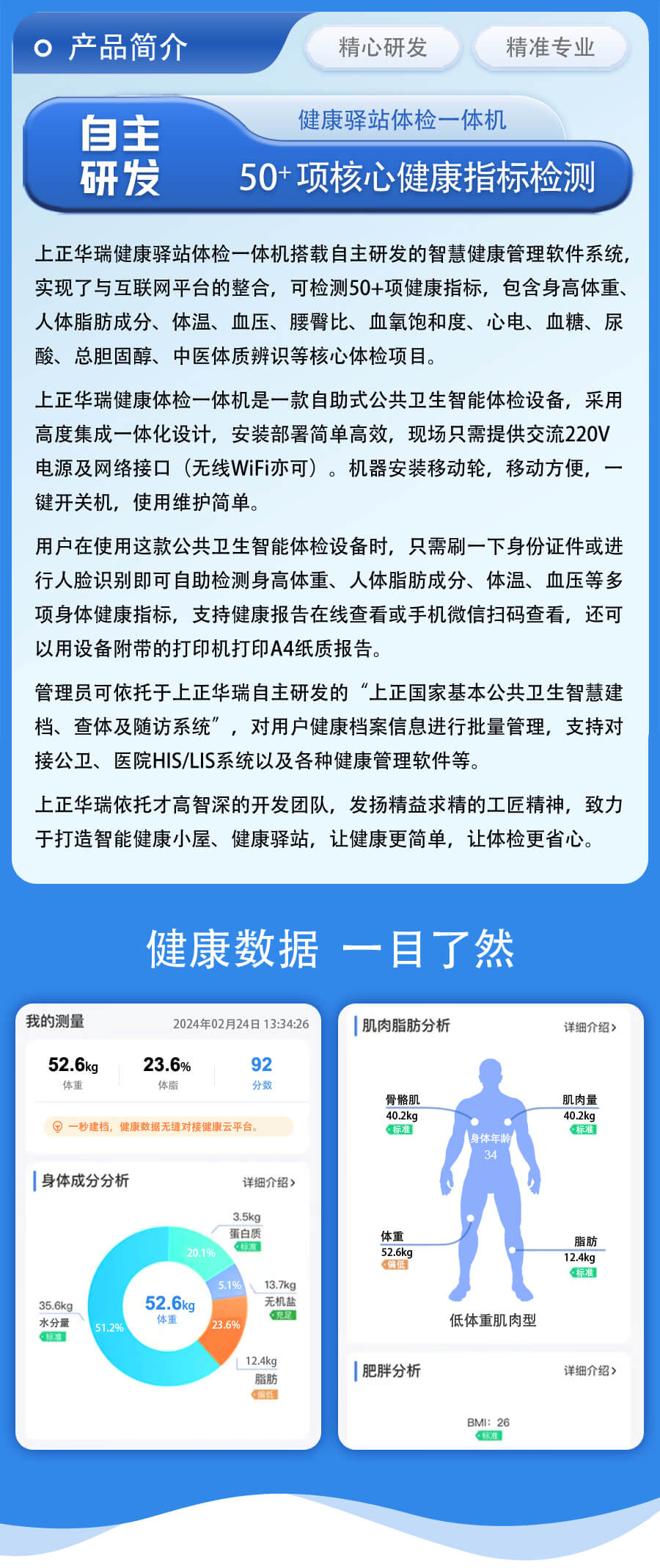健康管理工作站/健康小屋體檢一體機(jī)-上正華瑞產(chǎn)品說明:
