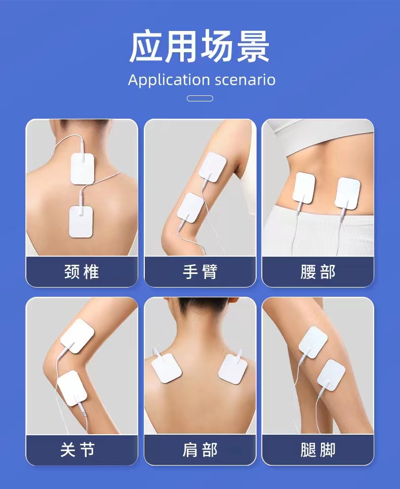 使用時,貼附在理療部位。配合中低頻治療儀設(shè)備,將中低頻治療儀設(shè)備輸出的電刺激信號傳導(dǎo)到人體皮膚表面。