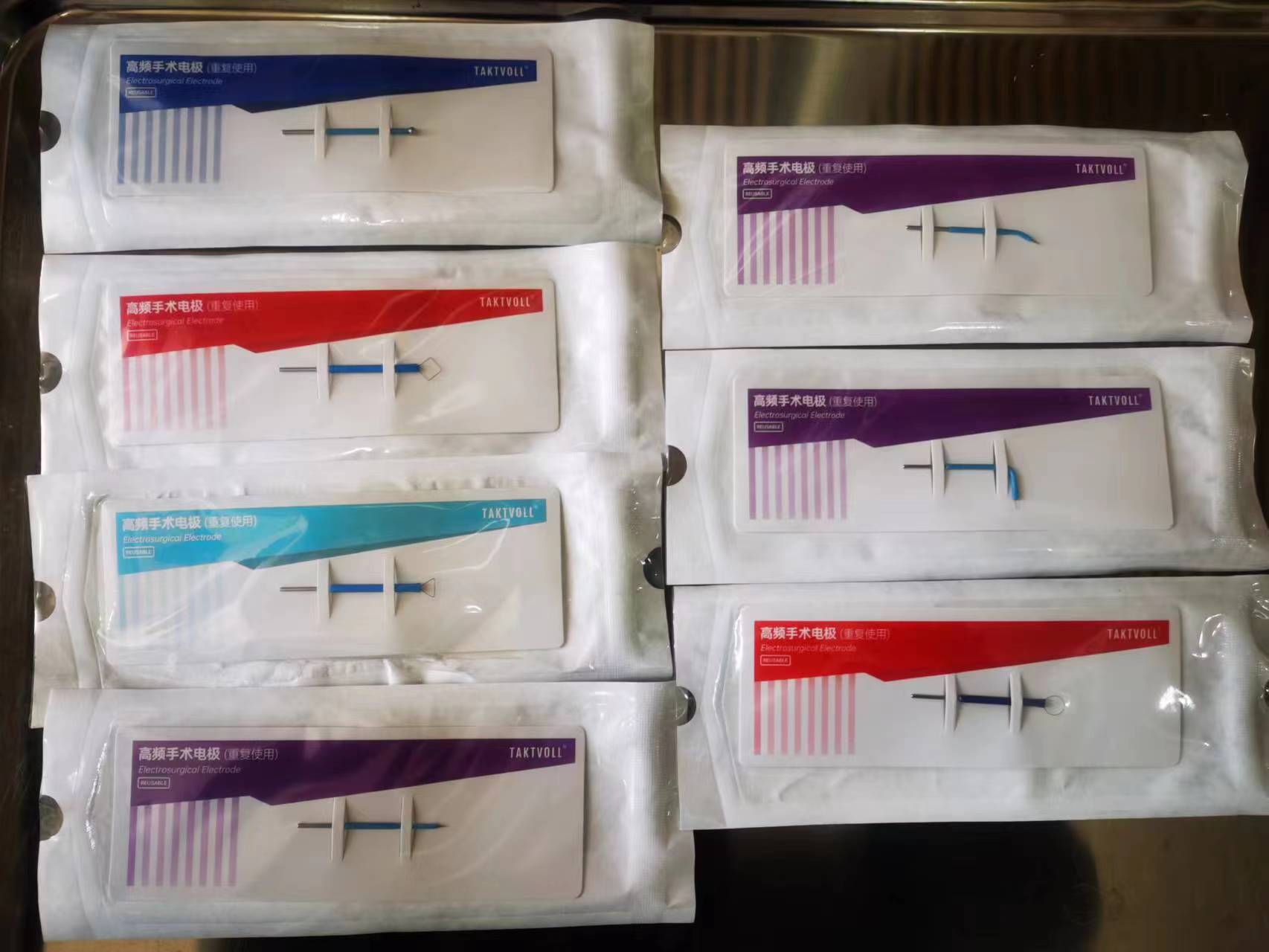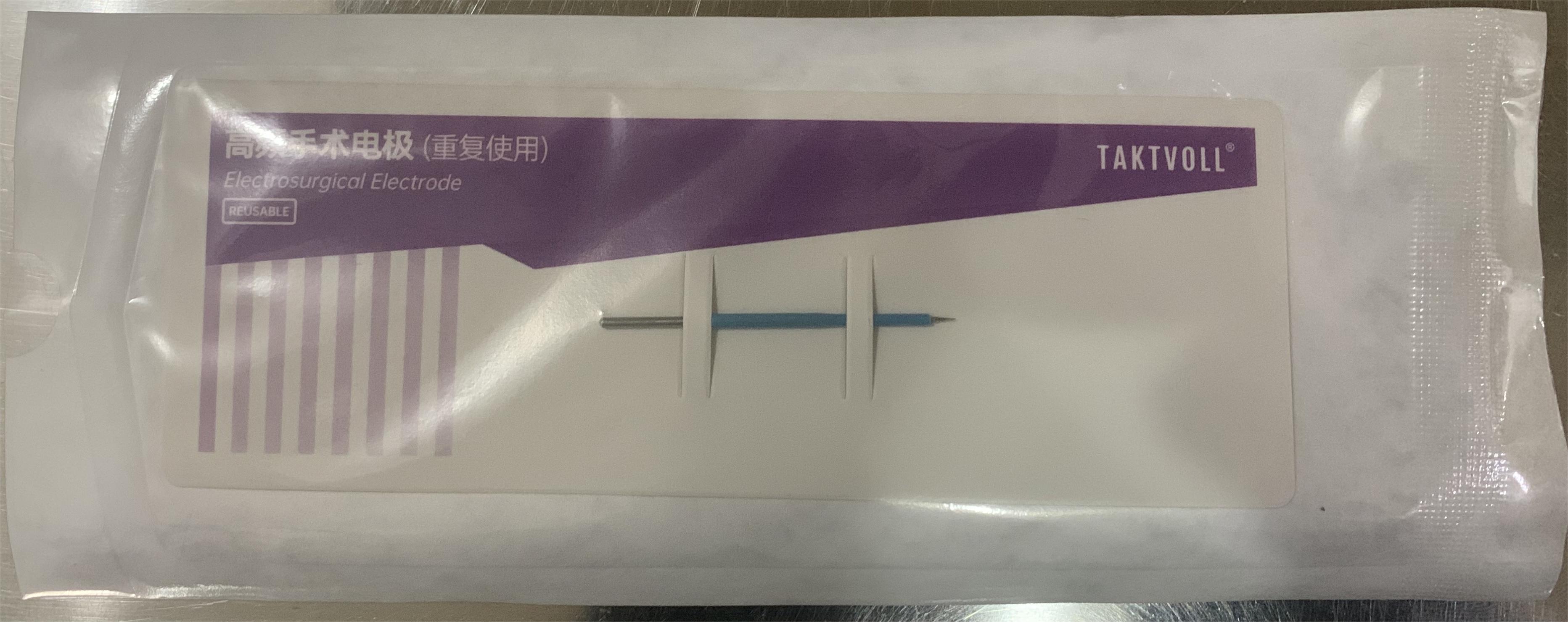 結(jié)構(gòu)與組成:高頻手術(shù)電極由工作部、支持部、夾持部組成。環(huán)形、三角形、方形高頻手術(shù)電極工作部材料為鎢絲,針形、球形、刀形工作部材料為不銹鋼;支持部由不銹鋼和絕緣材料乙烯-醋酸乙烯酯共聚物制成;夾持部由不銹鋼制成。
