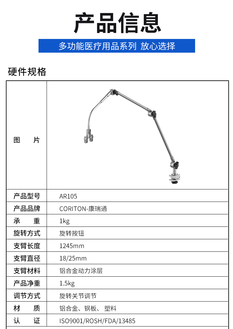 醫(yī)用呼吸機支臂支架產(chǎn)品說明: