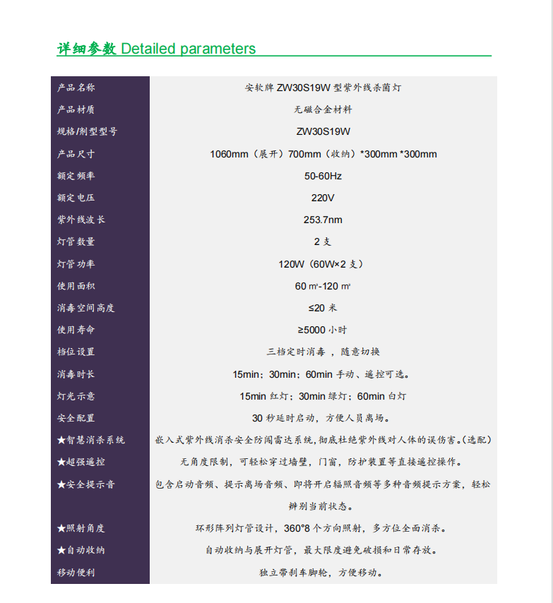 磁共振兼容紫外線消毒殺菌燈產(chǎn)品說明: