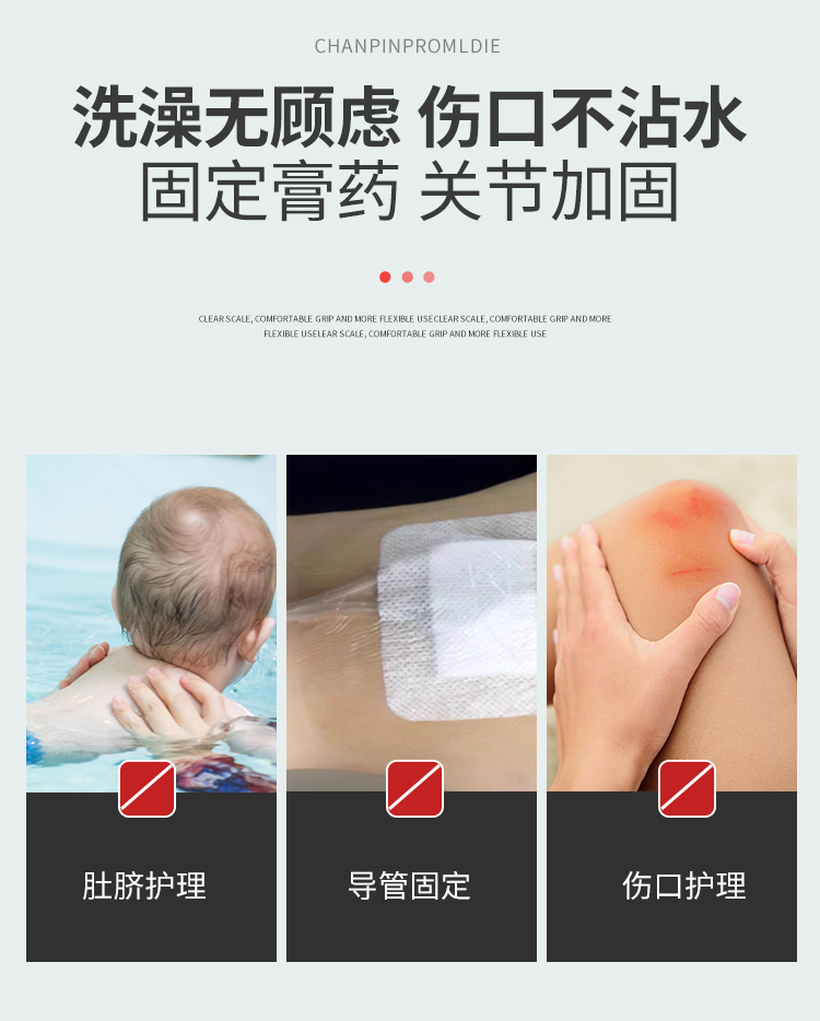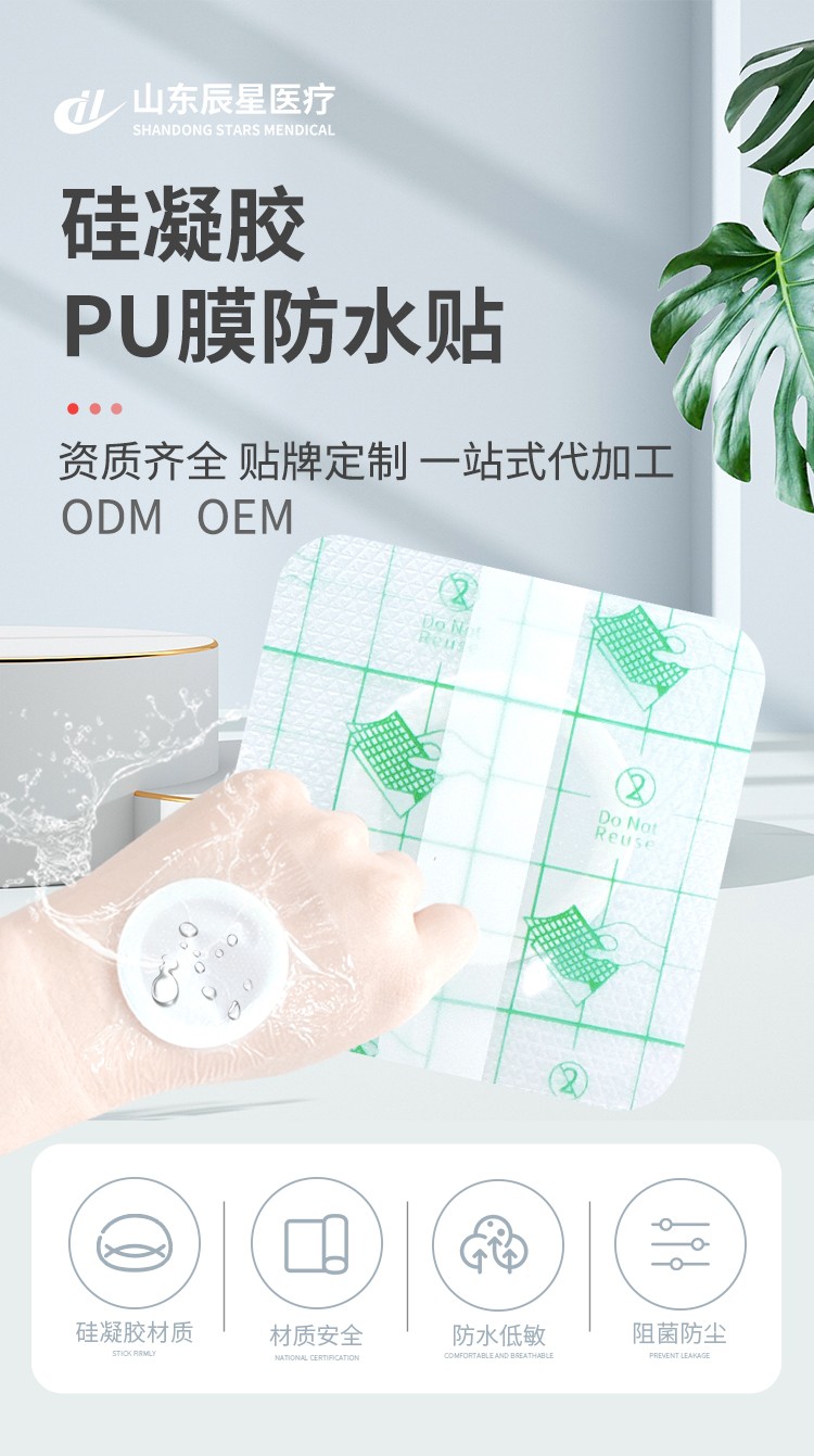硅凝膠PU膜防水空貼 醫(yī) 用膠帶敷料卷材產(chǎn)品說明: