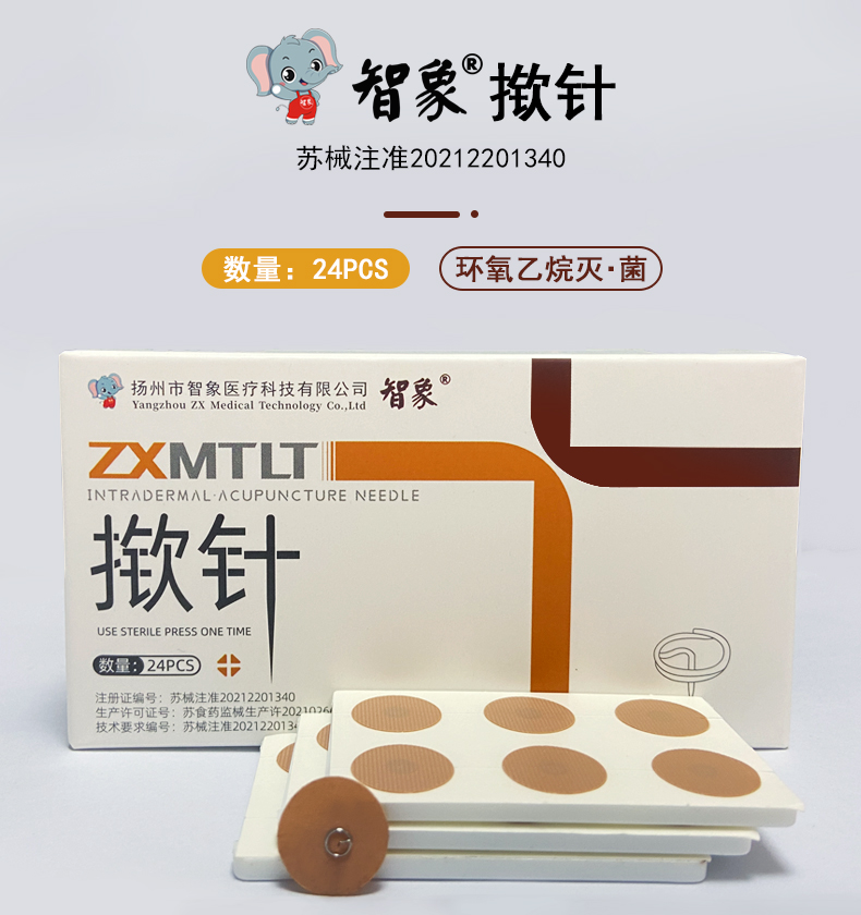 智象撳針耳針嵌針埋針無菌撳針24貼精品包裝圖釘式皮內(nèi)針產(chǎn)品說明: