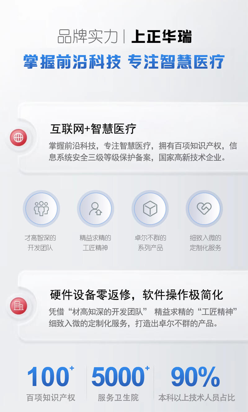 請搜索品牌詞“上正華瑞”聯(lián)系我們,我們承諾為您提供價格更優(yōu)、質量更好的隨訪包軟硬件產(chǎn)品。專業(yè)軟硬件運維團隊全天待命,有產(chǎn)品的地方便有我們兢兢業(yè)業(yè)的產(chǎn)品服務人員,為您量身解決需求難題,還有免費UI設計師、PPT制作人員為您拓展更完善的需求服務。買隨訪包請認準“上正華瑞”,已服務于全國5000多家衛(wèi)生院,用實力說話。