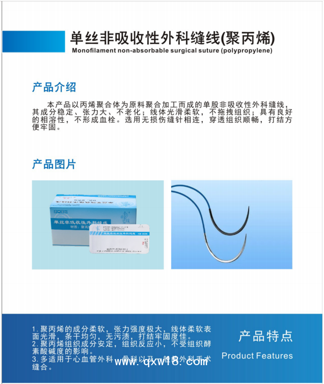 聚丙烯PP縫合線 單絲非吸收性外科縫合線 血管縫合線產(chǎn)品說(shuō)明: