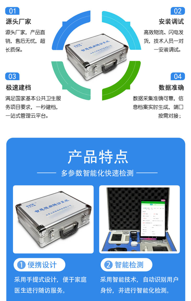 上正華瑞慢病隨訪包設(shè)計(jì)輕巧便攜,方便醫(yī)護(hù)人員在各種環(huán)境下進(jìn)行隨訪工作。這種便攜性使得醫(yī)護(hù)人員能夠輕松攜帶設(shè)備進(jìn)行上門隨訪,無(wú)需患者前往醫(yī)療機(jī)構(gòu),大大節(jié)省了患者的時(shí)間和精力。同時(shí),上正華瑞慢病隨訪包的操作簡(jiǎn)便,醫(yī)護(hù)人員可以快速上手,提高了隨訪的效率和覆蓋面。這種便攜性與易用性使得慢病隨訪更加靈活和高效。