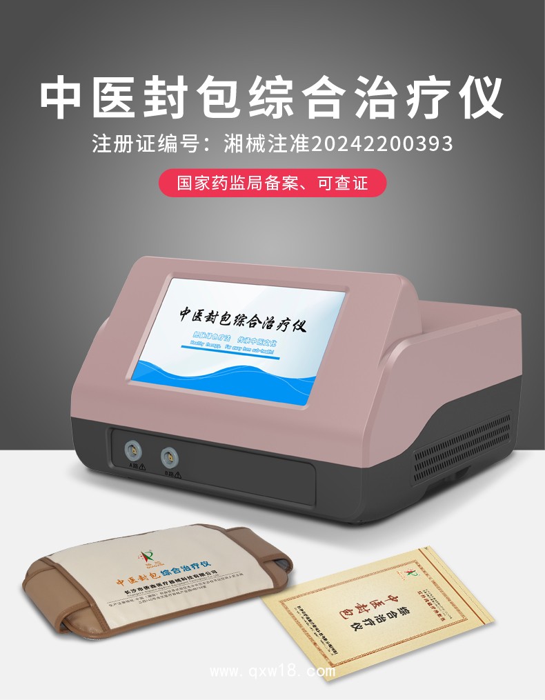中醫(yī)封包綜合治療儀是運用遠紅外線、磁場發(fā)生裝置,并通過連接交流220V網(wǎng)電源提供驅動電壓,磁場發(fā)生裝置、遠紅外線發(fā)生裝置分別產(chǎn)生800Gs的磁場強度和波長為8μm~15μm的遠紅外線波,以紅外線磁療熱敷包的熱輻射溫熱效應、磁療共同作用于人體病灶部位,直接作用于人體經(jīng)絡和穴位,刺激人體神經(jīng)和肌肉組織,改善細胞膜通透性,擴張血管,加速血流速度,從而增強人體局部的血液循環(huán),有效改善組織的供血狀況,起到消腫、鎮(zhèn)痛最終達到輔助治療的目的。