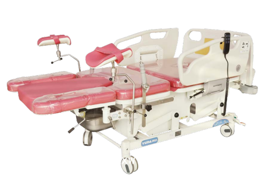 有污物盆。兩側可前后移動擱腿架,隱藏式輔助臺、翻轉式腳撐的結合使用,有助于孕婦分娩姿勢的
