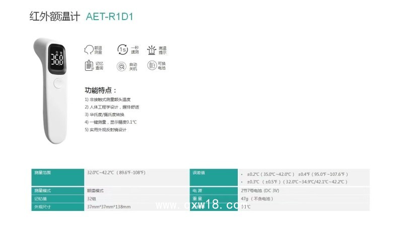 愛立康 額溫槍紅外額溫計(jì)AET-R1D1產(chǎn)品說明: