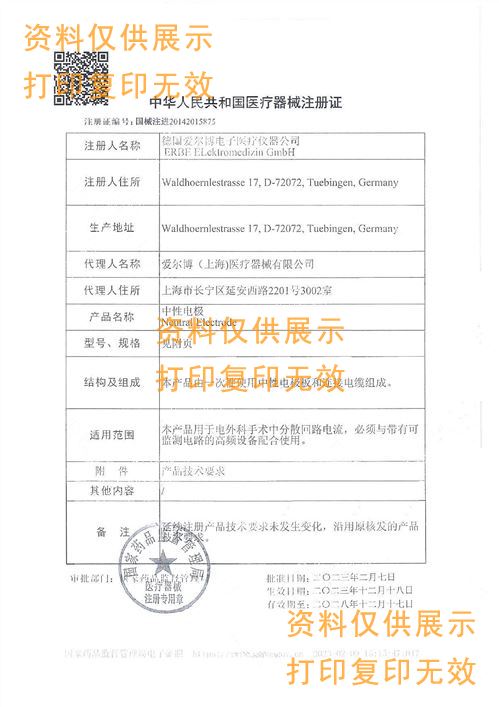 德國(guó)愛爾博ERBE中性電極、負(fù)極板20193-082產(chǎn)品說明: