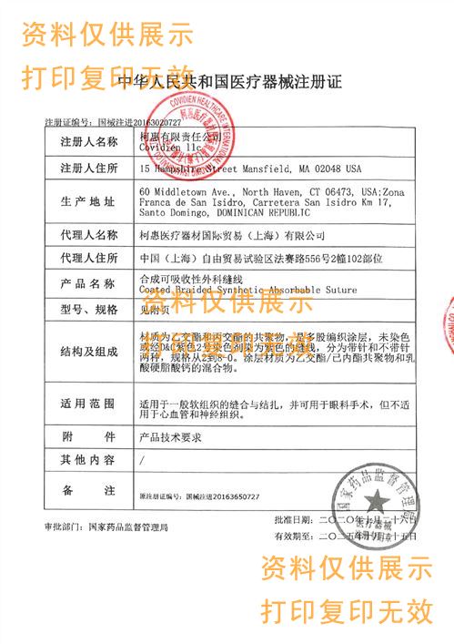 ? ? ??材質(zhì)為乙交酯和丙交酯的共聚物,是多股編織涂層,未染色或經(jīng)D&C紫色2號(hào)染色劑染為紫色的縫線,分為帶針和不帶針兩種,規(guī)格從2到8-0。涂層材質(zhì)為乙交酯/已內(nèi)酯共聚物和乳酸硬脂酸鈣的混合物。