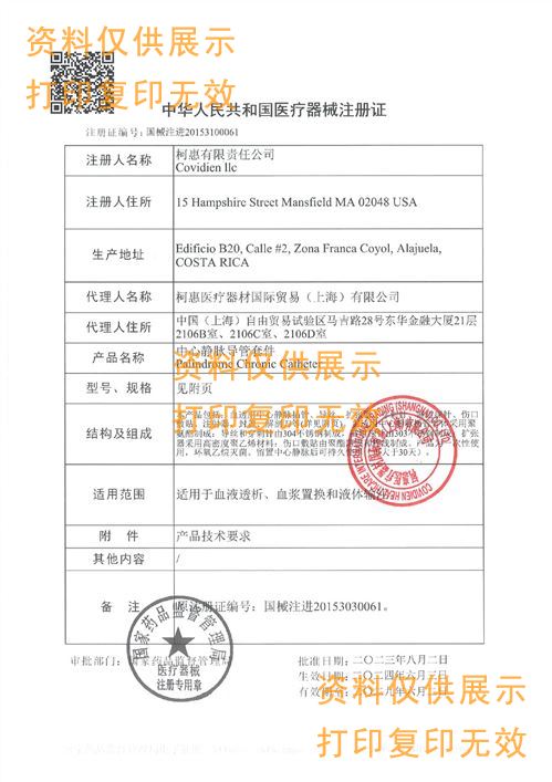 ? ? ? ? 本產(chǎn)品包括:血透用中心靜脈插管、導(dǎo)絲、擴(kuò)張器、穿刺針、隧道探針、傷口敷貼、注射器、封蓋、解剖刀等 (詳見附頁)。血透用中心靜脈插管管體采用聚氨酯制成:導(dǎo)絲和穿刺針由304不銹鋼制成,隧道探針由303不銹 鋼制成:擴(kuò)張器采用高密度聚乙烯材料:傷口敷貼由聚酯薄膜和棉線制成。產(chǎn)品為一次性使用,環(huán)氧乙烷滅菌。 留置中心靜脈后可持久使用(可大于30天)。