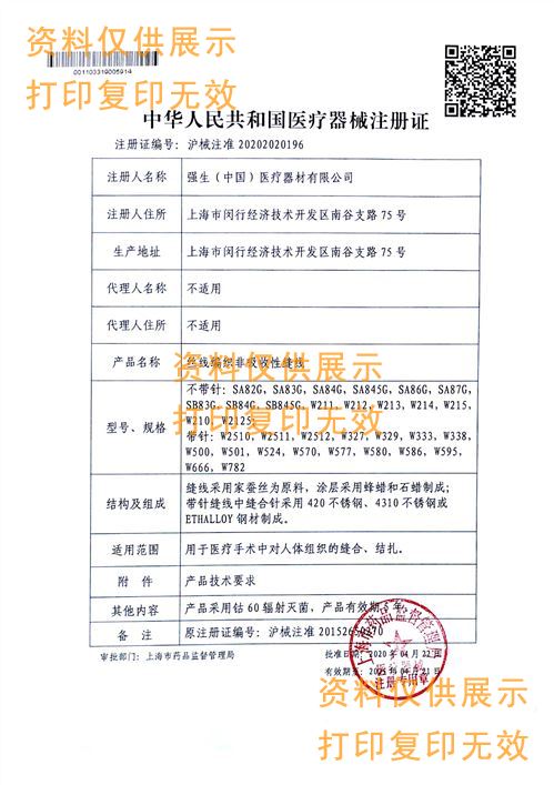 ? ? ??縫線采用家蠶絲為原料,涂層采用蜂蠟和石蠟制成;帶針縫線中縫合針采用420不銹鋼、4310不銹鋼或ETHALLOY鋼材制成。