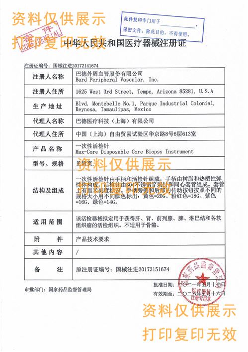 美國巴德BARD 一次性活檢針 MC1616產(chǎn)品說明: