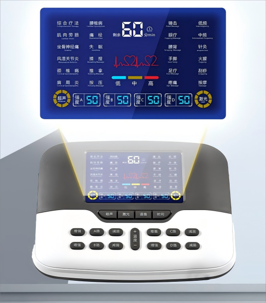 1.中頻治療系統(tǒng),采用目前國(guó)際上比較超前的運(yùn)動(dòng)式交變螺旋磁場(chǎng)、定譜遠(yuǎn)紅外、深入可變式電熱、定向?qū)ΨQ脈沖等比較先進(jìn)的透化技術(shù),結(jié)合中藥低溫萃取、納米孢子破壁處理及中醫(yī)中藥內(nèi)病外治的原理,可將中藥精華靶向的送到病灶部位,此療法無痛、快速、綠色安全,為