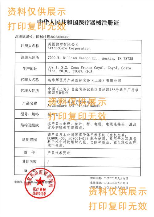 ? ? ? ? 該產(chǎn)品與本公司等離子體手術(shù)系統(tǒng)(主機(jī)型號:EC8001-00、EC8001-01)配合使用,適用于在耳鼻喉科手術(shù)中對軟組織汽化、切除和凝血,在生理鹽水環(huán)境下使用。