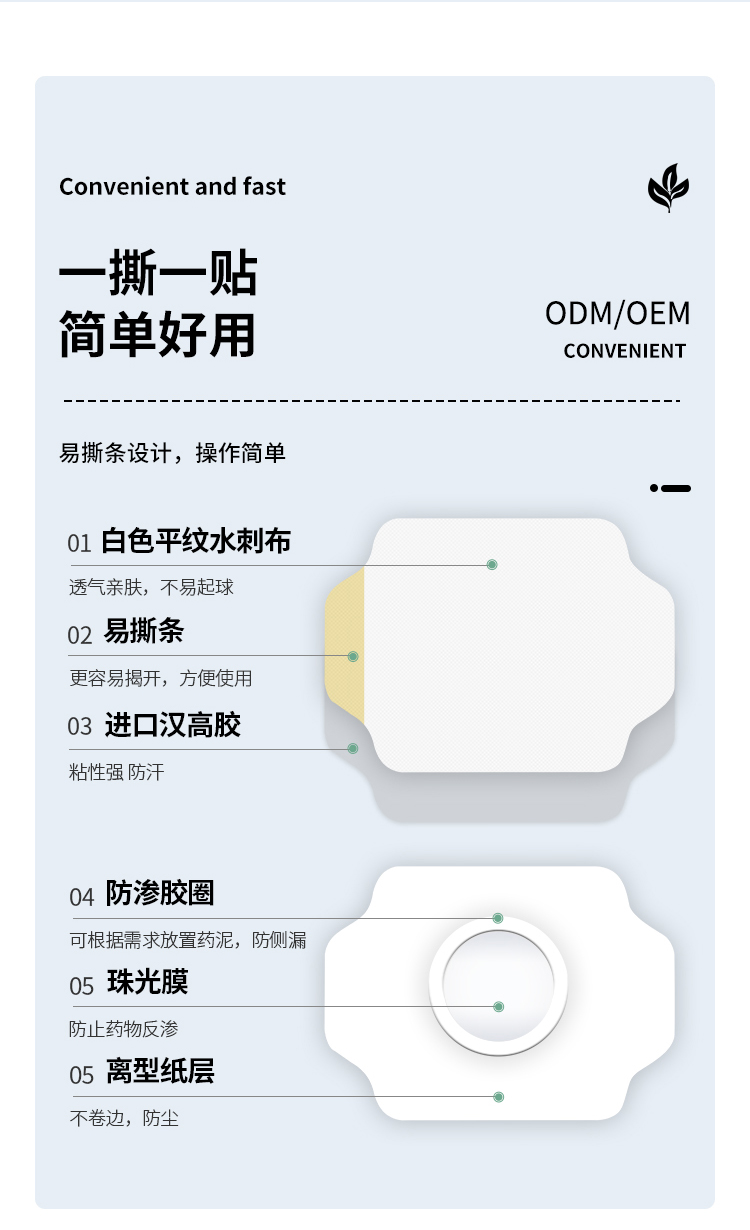 醫(yī)用透氣膠帶異形膏藥貼穴位貼空白貼OEM代加工產(chǎn)品說明: