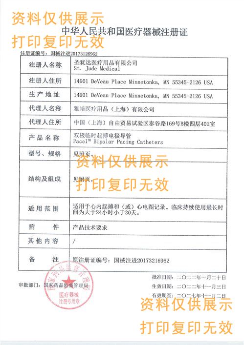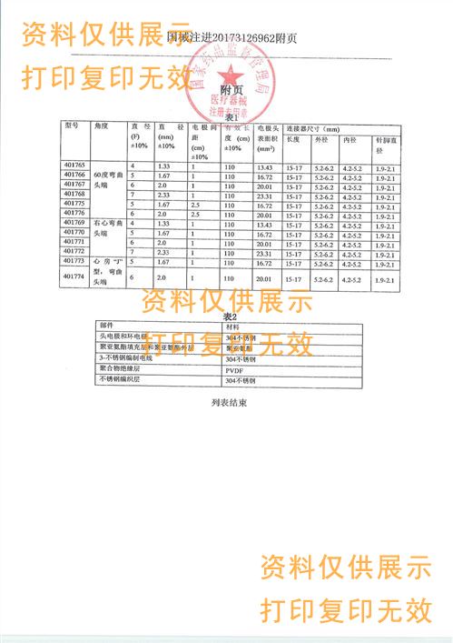 適用范圍:適用于心內(nèi)起搏和(或)心電圖記錄。臨床持續(xù)使用最長(zhǎng)時(shí)間為大于24小時(shí)小于30天。