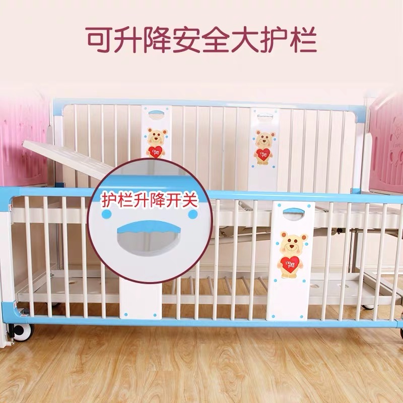 手搖兒童病床 柵欄式護(hù)欄 雙搖產(chǎn)品說明: