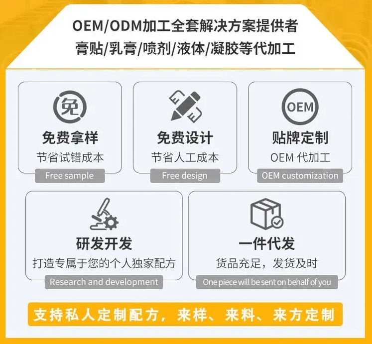 一、膏藥oem貼牌定制。我們的設(shè)計(jì)團(tuán)隊(duì)和營(yíng)銷(xiāo)策劃團(tuán)隊(duì),可根據(jù)您的實(shí)際情況和要求,定制屬于您的正規(guī)產(chǎn)品,保證您的產(chǎn)品流通無(wú)憂。