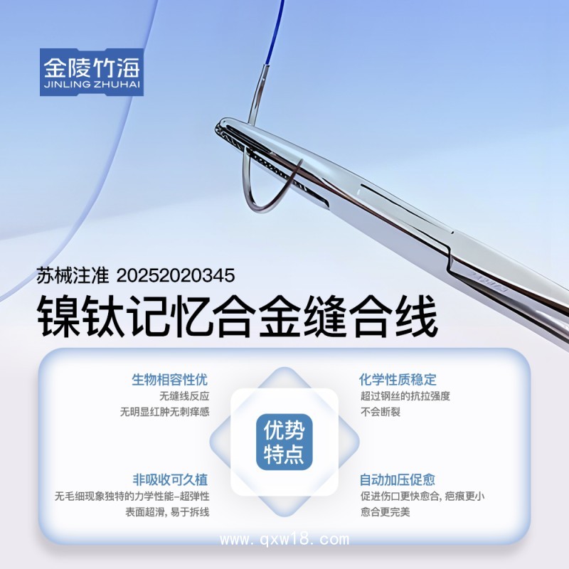 鎳鈦記憶合金縫合線由縫合針、縫線和夾線扣組成。該產(chǎn)品以無菌狀態(tài)提供,經(jīng)輻照滅菌,一次性使用。