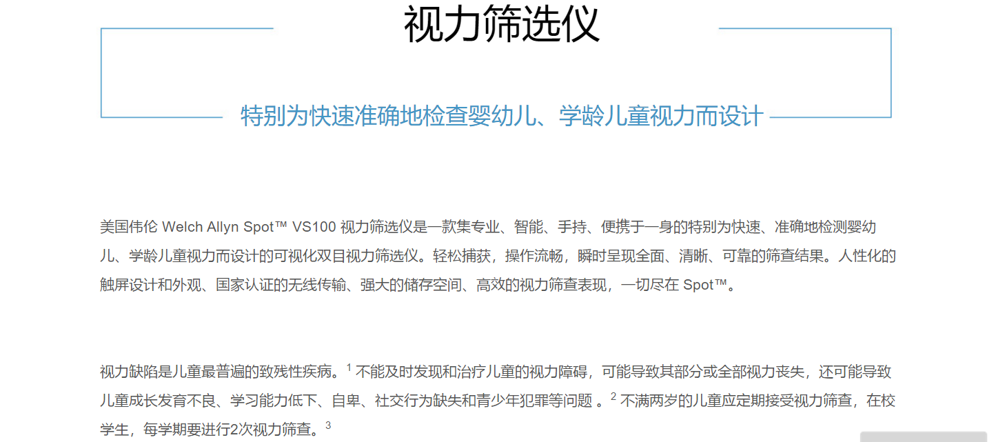 美國(guó)偉倫Welch Allyn Spot雙目視力篩查儀VS100產(chǎn)品說(shuō)明: