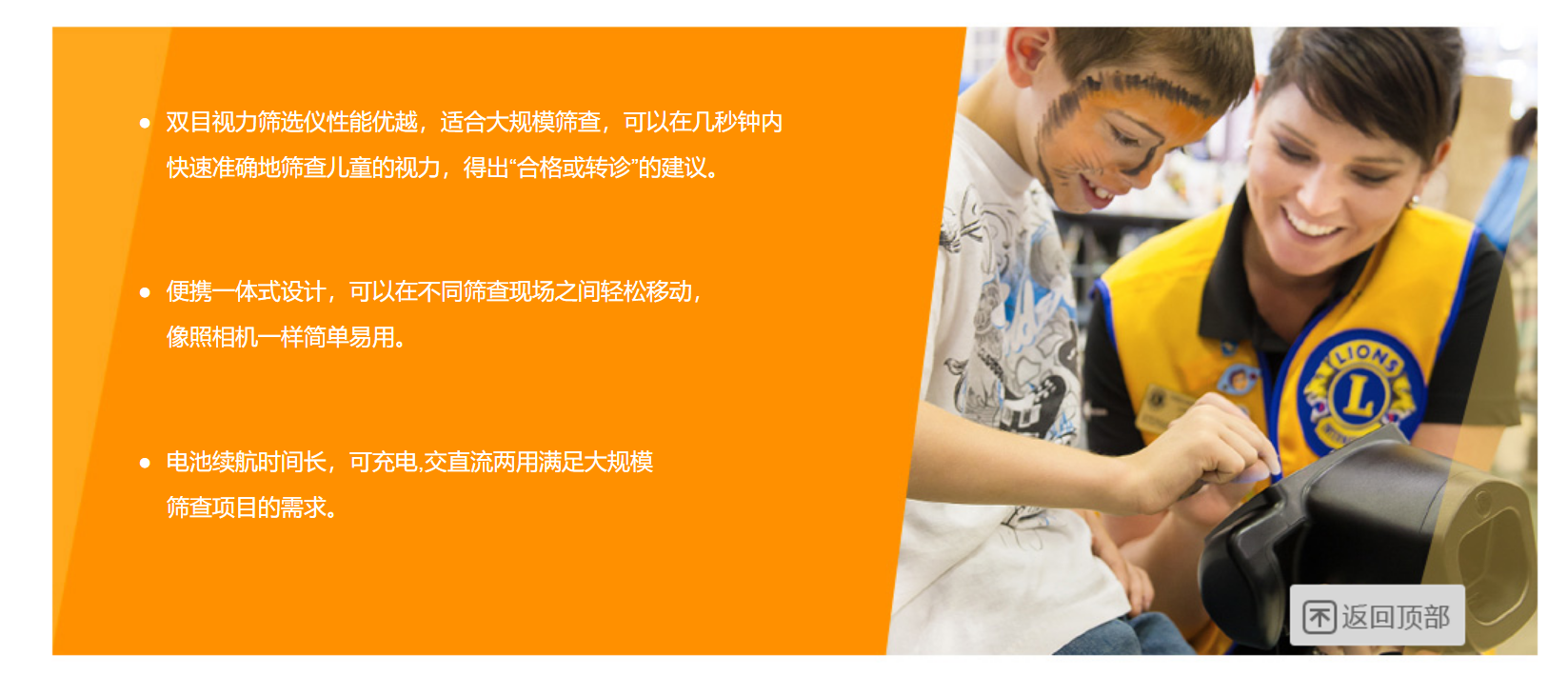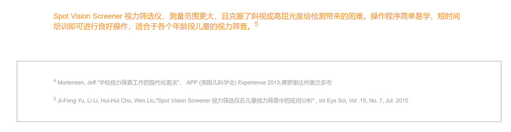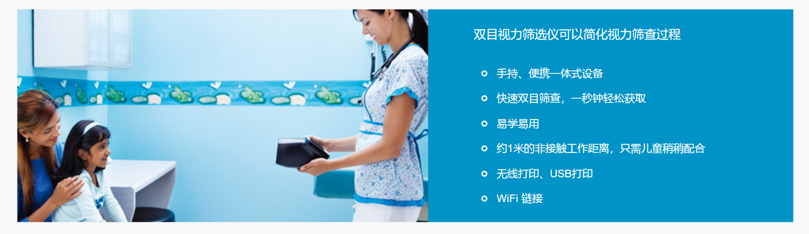 ·性能優(yōu)越,適合大規(guī)模篩查,可以在幾秒鐘內(nèi)快速準(zhǔn)確地篩查兒童的視力,得出合格或轉(zhuǎn)診的結(jié)論。