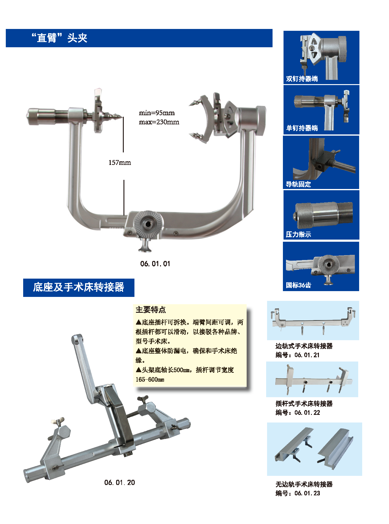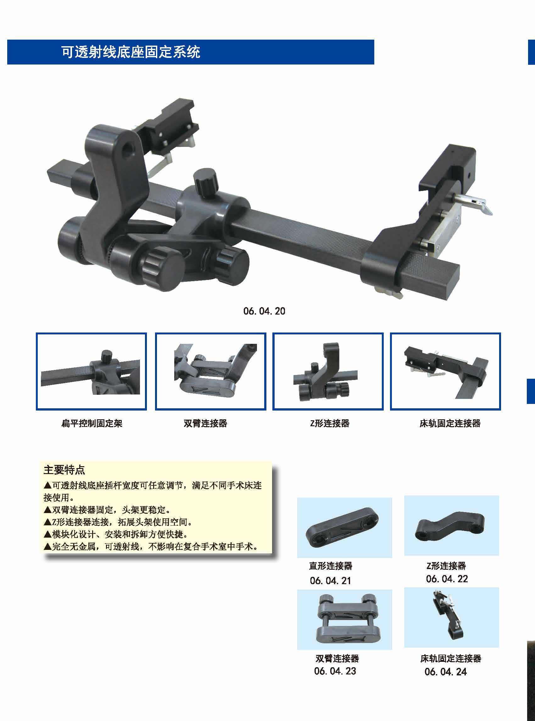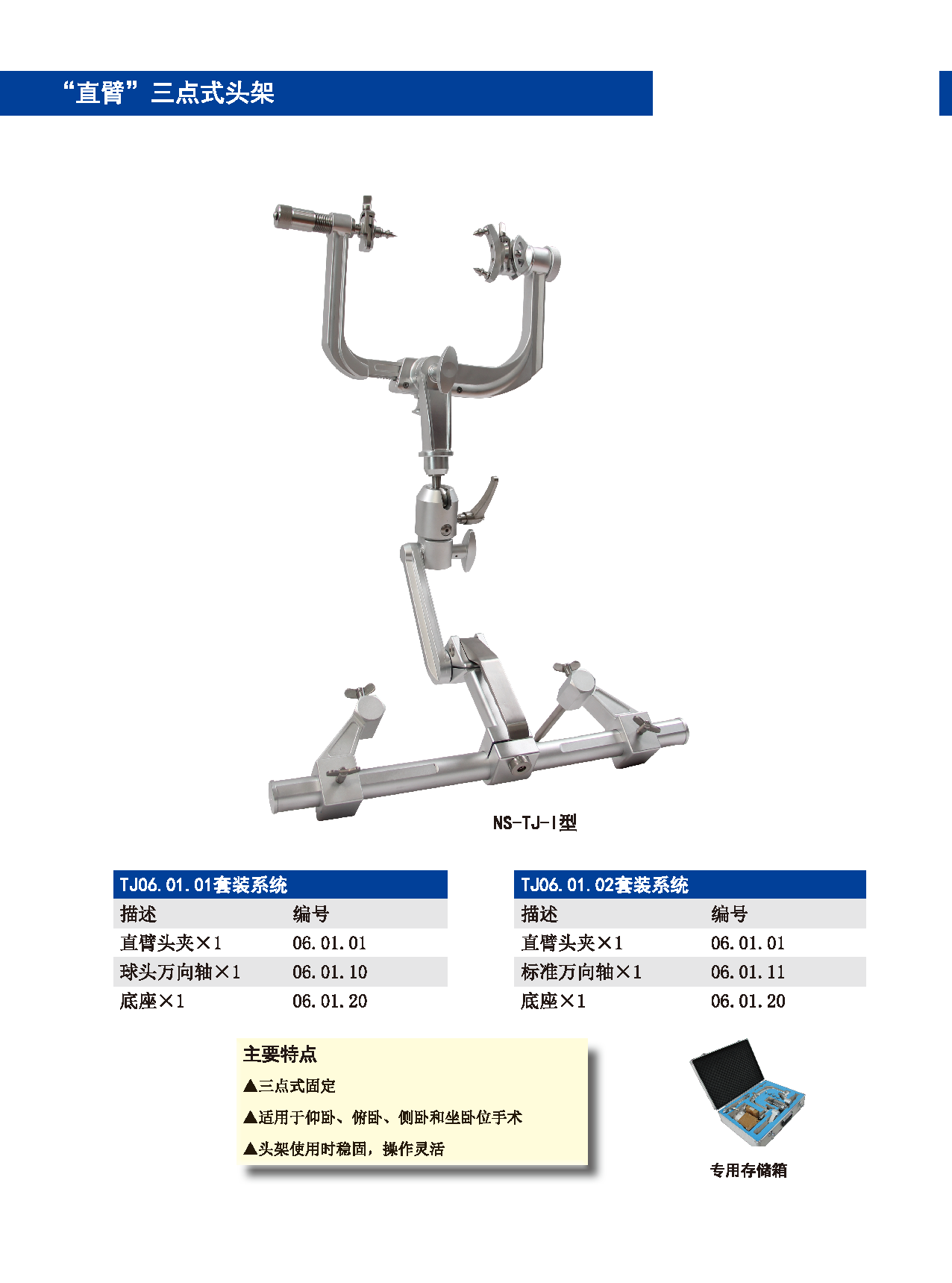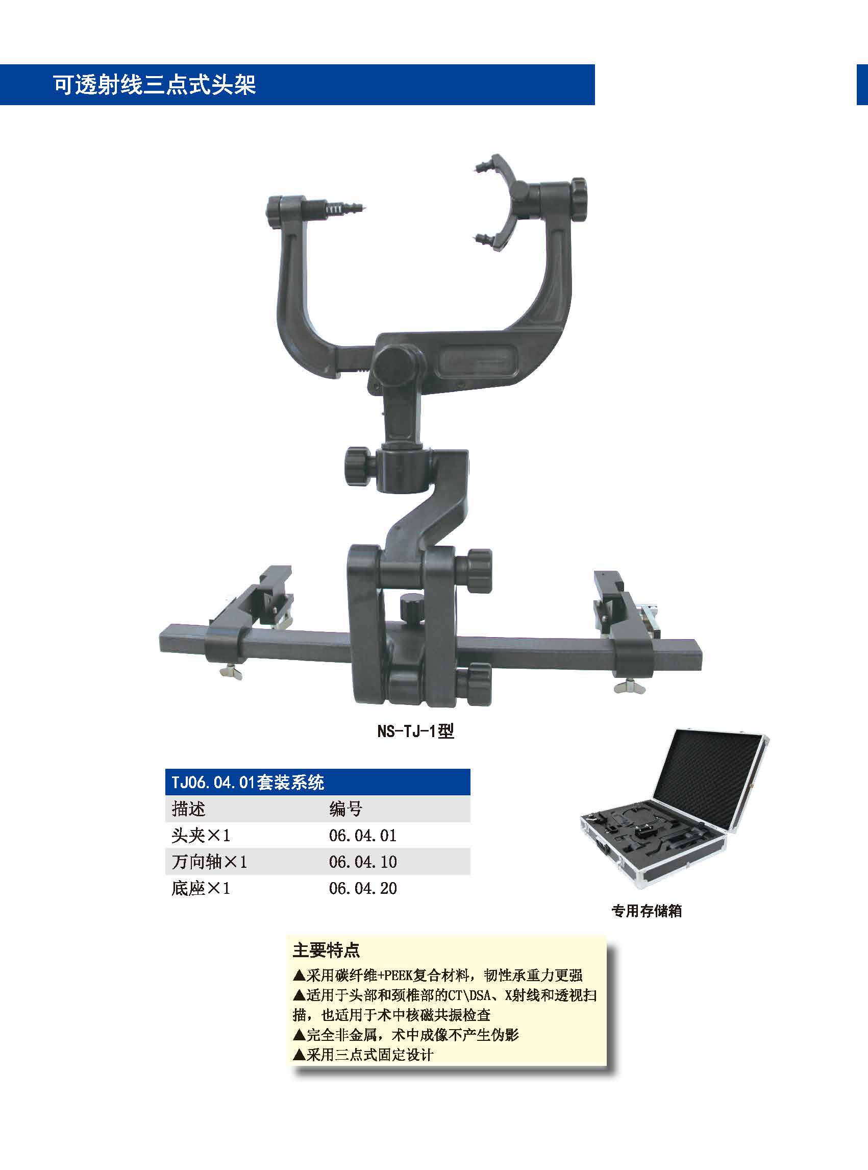 產(chǎn)品優(yōu)勢(shì)賣點(diǎn):適用于仰臥、俯臥、側(cè)臥、坐臥位手術(shù),頭架使用時(shí)穩(wěn)固,操作靈活;合金、碳纖維PEEK復(fù)合材質(zhì)兩種選擇,碳纖維PEEK復(fù)合材料頭架韌性承重力更強(qiáng),適用于頭部和頸椎部的CT/DSA/X射線和透視掃描,也適用術(shù)中核磁共振檢查,完全非金屬術(shù)中成像不產(chǎn)生偽影。