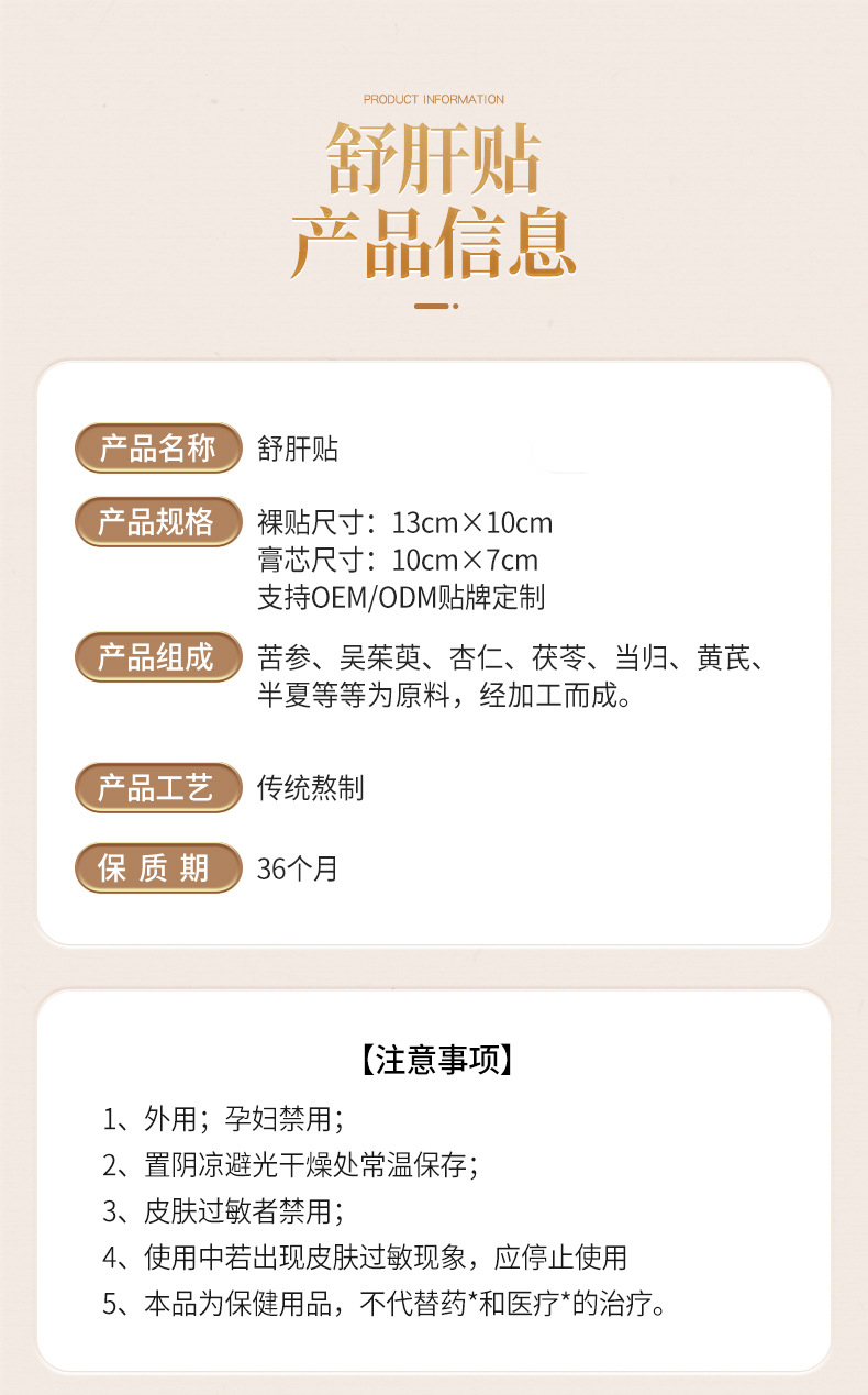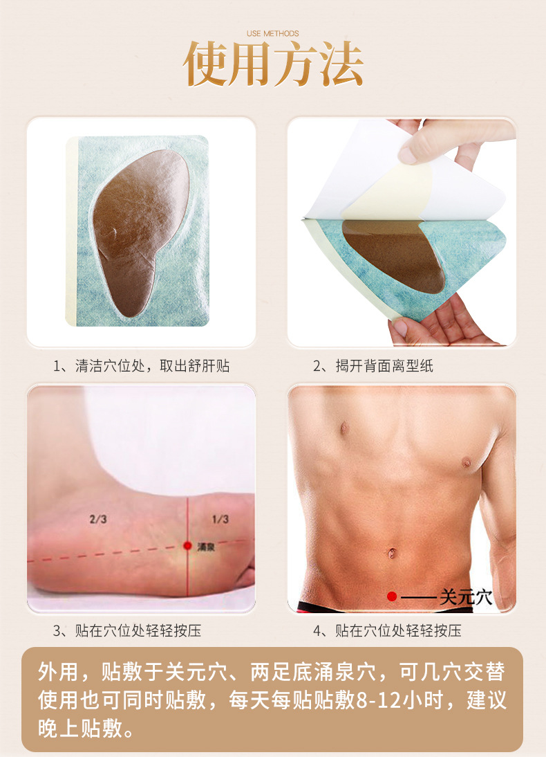穴位貼敷治療貼 護(hù)肝蜂蜜貼 舒緩肝部不適腹脹難受 可批發(fā) 可貼牌代工產(chǎn)品說(shuō)明: