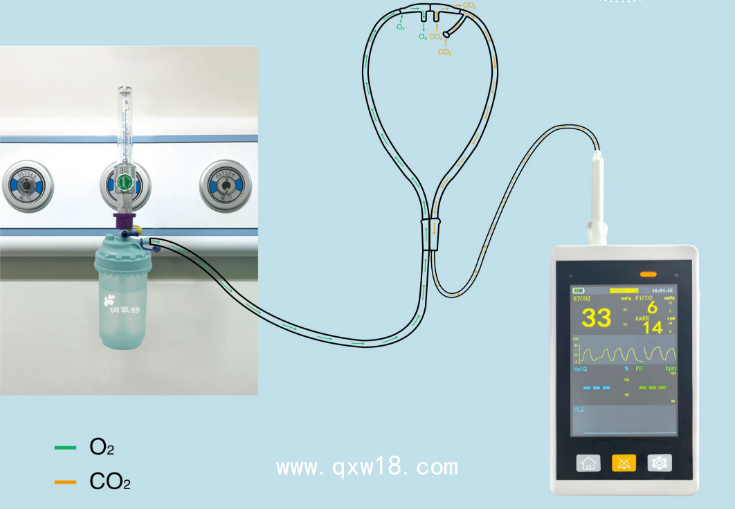 與供氧裝置連接,可供臨床輸氧用,同時可進(jìn)行呼氣末二氧化碳采集。