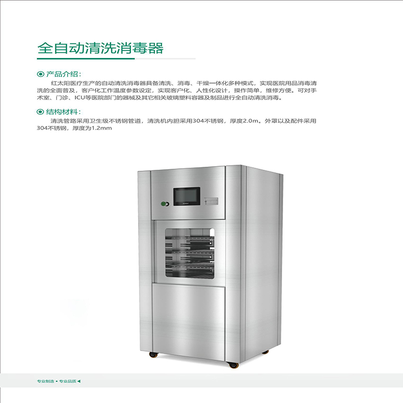 化 學 消 毒 模 式 沖 洗→ 化 學消 毒 (加 消 毒劑 ) →一 漂 →二 漂。 2.采 用雙 層 剛化 鍍 膜大 視 窗透 明 玻璃 門 體,隔 音 隔 熱,雙 門互 鎖 ,主 動壓 緊 密封 更 可靠 ,保 護工 作 人 員 和清 洗 物品 安 全。 3.故 障自 檢 診斷 功 能:系 統(tǒng)設 備 安全 自 檢故 障 診 斷 功能 , 保證 了 設備 運 行安 全 。 4.門 系統(tǒng) :通 道式 的 雙門 有 互鎖 功 能,保 障了 清 洗 區(qū)和 清 潔區(qū) 之 間的 有 效隔 斷;大 視窗 雙 層透 明 鋼化 玻 璃門 體,隔 音隔 熱 ,可 方便 觀 察設 備 內(nèi)的 器 械清 洗 狀 態(tài)。 密 封門 升 降采 用 雙側 同 步帶 傳 動方 式 ,動 作平 穩(wěn) 可 靠,門 上帶 有 遠紅 外 線防 夾 手設 計 ,遇 到障 礙 物預 先 報警 , 不接 觸 障礙 物 ,保 證 人員 誤 操作 下 的安 全。