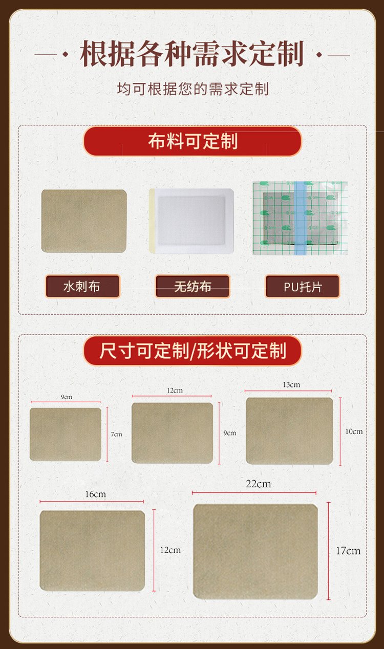 遠(yuǎn)紅外理療貼代加工 二類(lèi)械字號(hào)膏藥廠家 規(guī)格可定制產(chǎn)品說(shuō)明:
