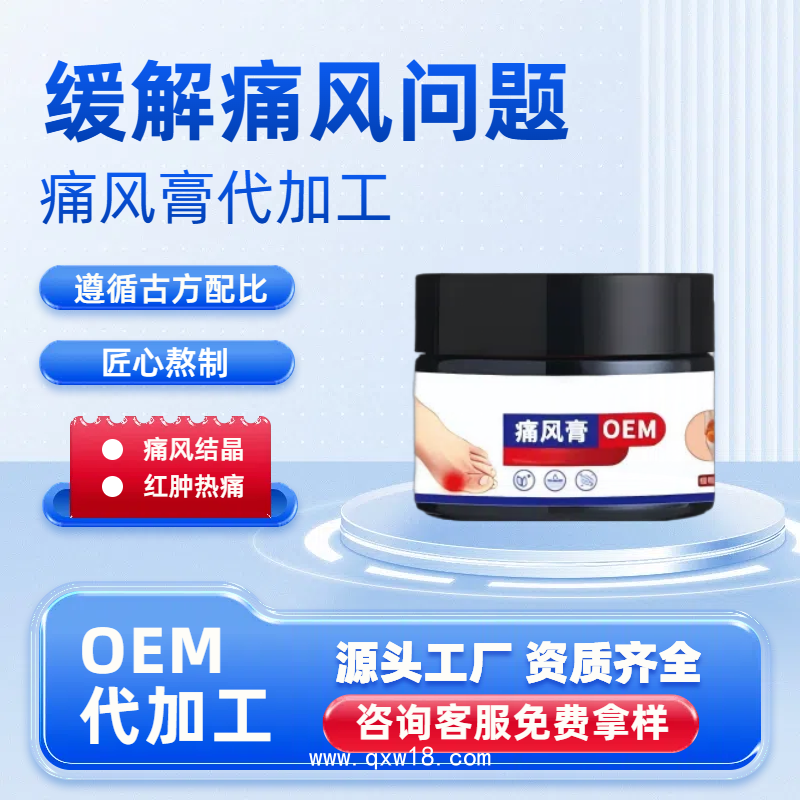 隨著現(xiàn)代生活節(jié)奏的加快和飲食結(jié)構(gòu)的改變,痛風(fēng)作為一種慢性代謝性疾病在全球范圍內(nèi)的發(fā)病率逐漸攀升。痛風(fēng)引發(fā)的關(guān)節(jié)疼痛及硬塊結(jié)晶常常給患者帶來(lái)巨大困擾。針對(duì)這一癥狀,痛風(fēng)膏作為一種局部外用產(chǎn)品,以其緩解疼痛、減少炎癥和促進(jìn)結(jié)晶溶解的作用,愈發(fā)受到患者和行業(yè)的青睞。山東九興藥業(yè)有限公司在痛風(fēng)膏定制批發(fā)及OEM貼牌代加工領(lǐng)域擁有豐富的經(jīng)驗(yàn),結(jié)合現(xiàn)代科技和傳統(tǒng)理念,致力于為客戶(hù)提供高質(zhì)量、有效的痛風(fēng)膏產(chǎn)品。
