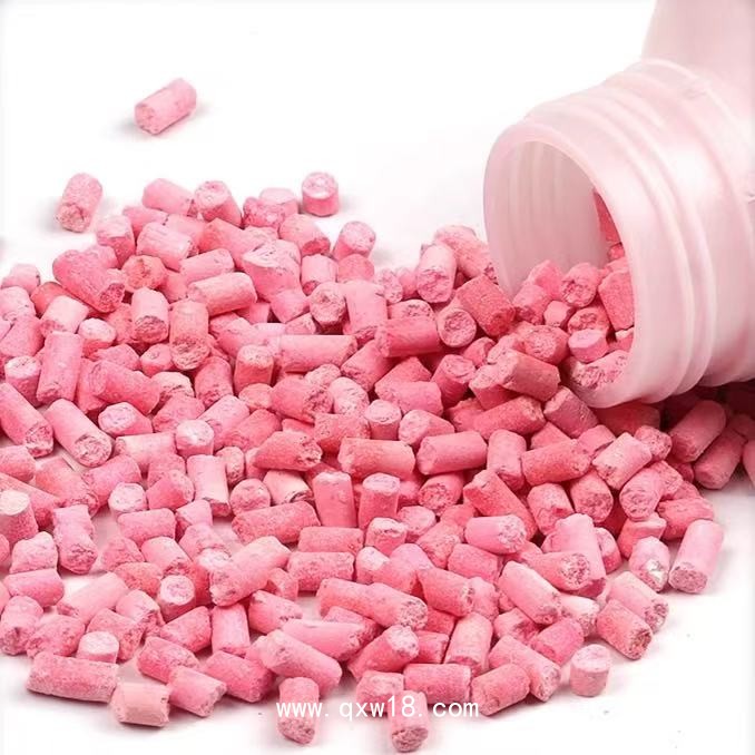 多孔疏松狀結(jié)構(gòu)的大小均勻顆粒,含變色指示劑,吸收二氧化碳后由粉紅色變成白色或由白色變成紫色。非無菌產(chǎn)品。