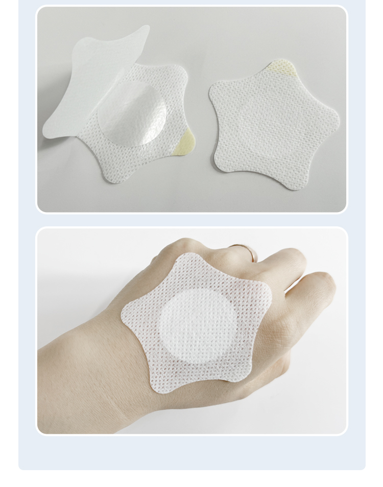 水刺布醫(yī)用透氣膠貼 兒童五角星形空白穴位貼 加防滲珠光膜產(chǎn)品說明: