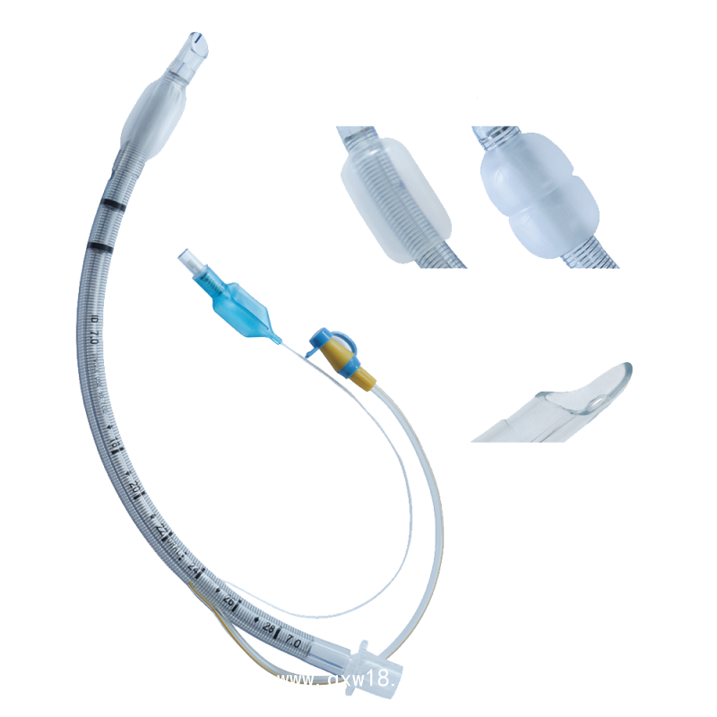 產(chǎn)品由管體(PVC材質(zhì)含有X光顯影線)、接頭、套囊(氣管套囊、左或右支氣管套囊)、充氣管、管體連接器、支管(雙腔型)、內(nèi)窺鏡通道(可視型)、內(nèi)窺鏡通道接頭(可視型)、指示氣囊和單向閥組成。