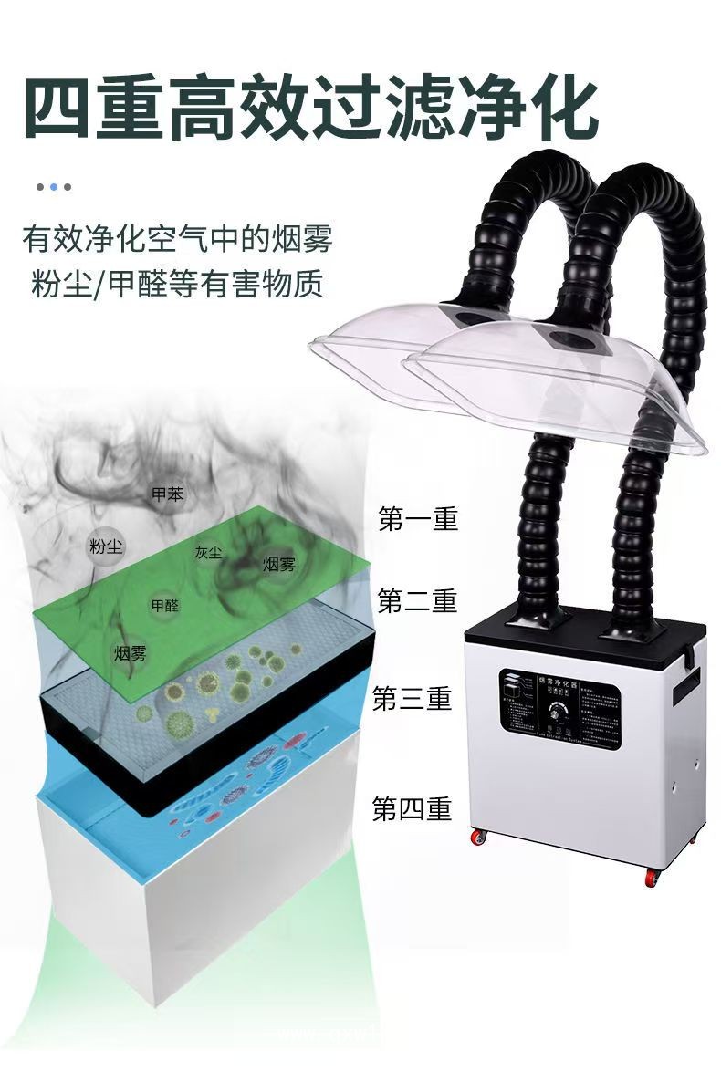 ◆采用四重過濾設計。逐層過濾,確保有害煙塵被濾除。