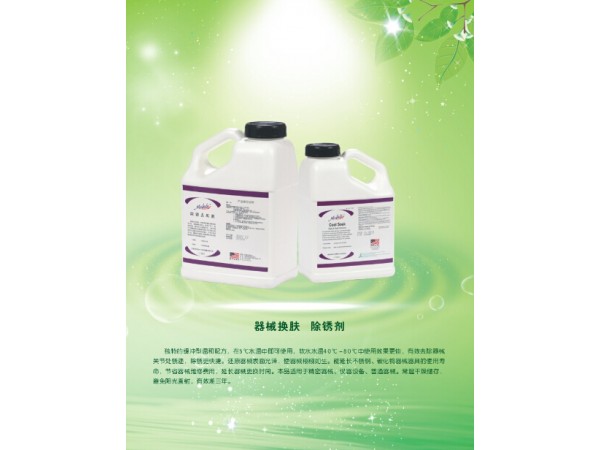 產(chǎn)品說明:獨特的緩沖型溫和配方,在5℃水溫中即可使用,軟水水溫40℃-80℃中使用效果更佳,有效去除器械關節(jié)處銹跡,除銹更快捷。還原器械