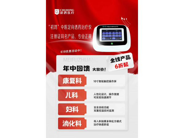 產(chǎn)品說明:初鴻中醫(yī)定向透藥療法儀是一種新型的中醫(yī)治療設(shè)備,它采用先進(jìn)的定向透藥技術(shù),能夠針對(duì)不同的病癥和穴位,將藥物直接滲透到患處